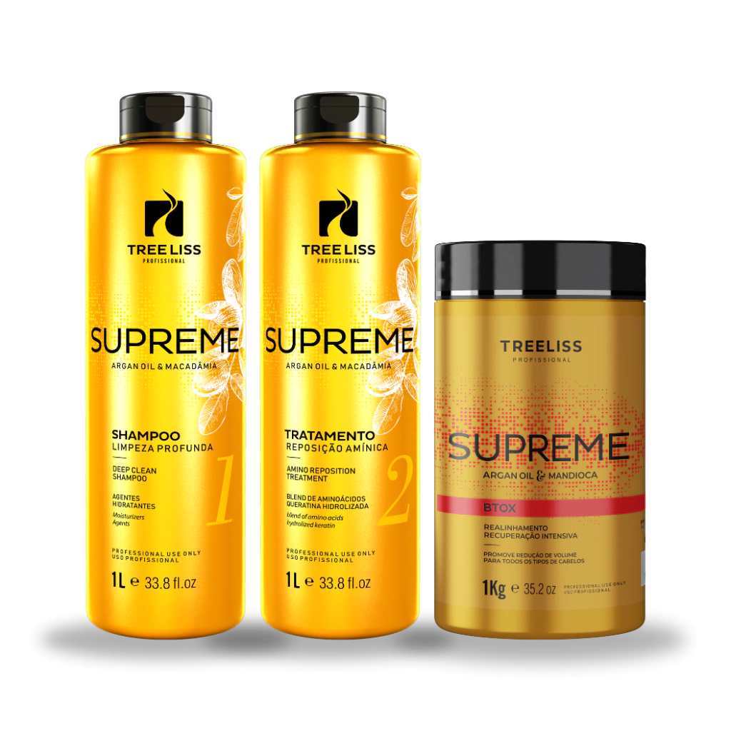 Kit Alisamento Supreme Treeliss Profissional com Shampoo de Limpeza Profunda, Tratamento Progressiva e máscara BTX: Cabelos radiantes!