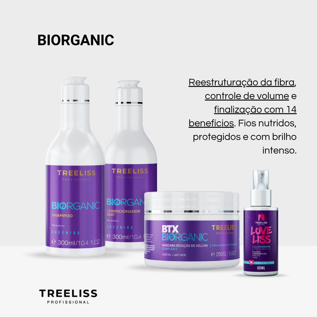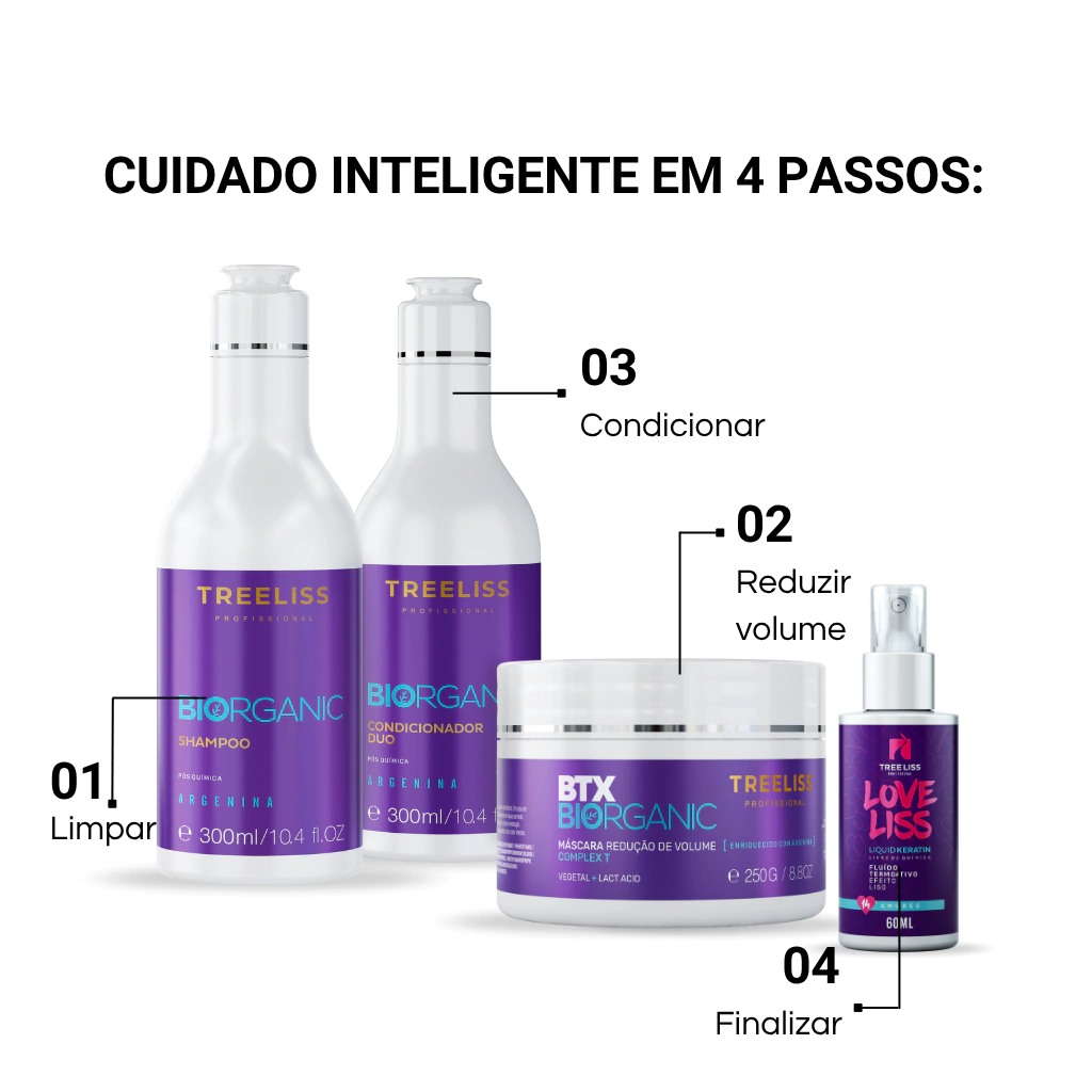 Comece hoje mesmo seu tratamento com o Kit Hidratante Biorganic Treeliss Profissional 4 itens e perceba a diferença já no primeiro uso.