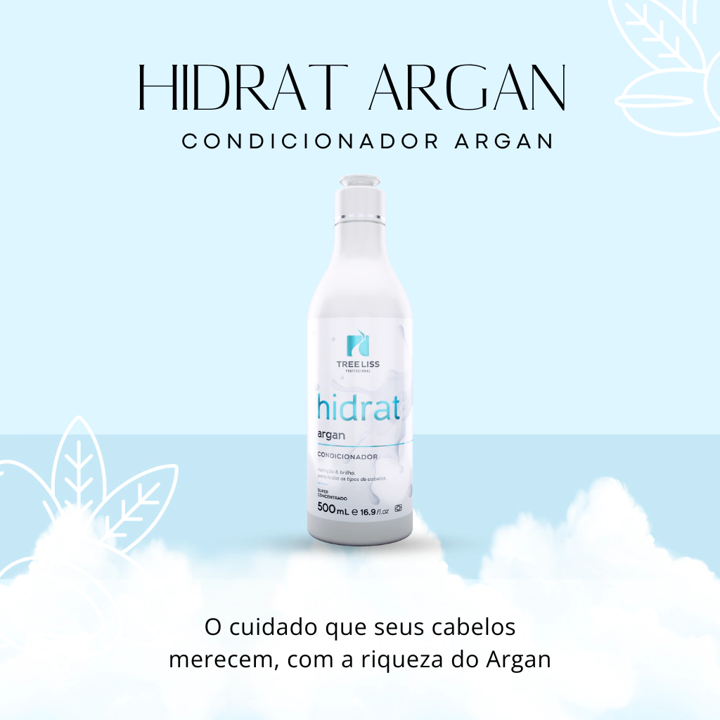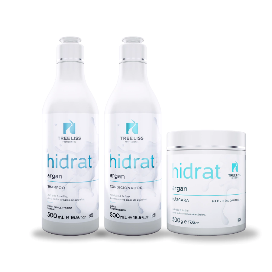 Para manter os cabelos nutridos e hidratados, utilize o Kit Hidrat Argan Treeliss Profissional na sua rotina de cuidados diários.