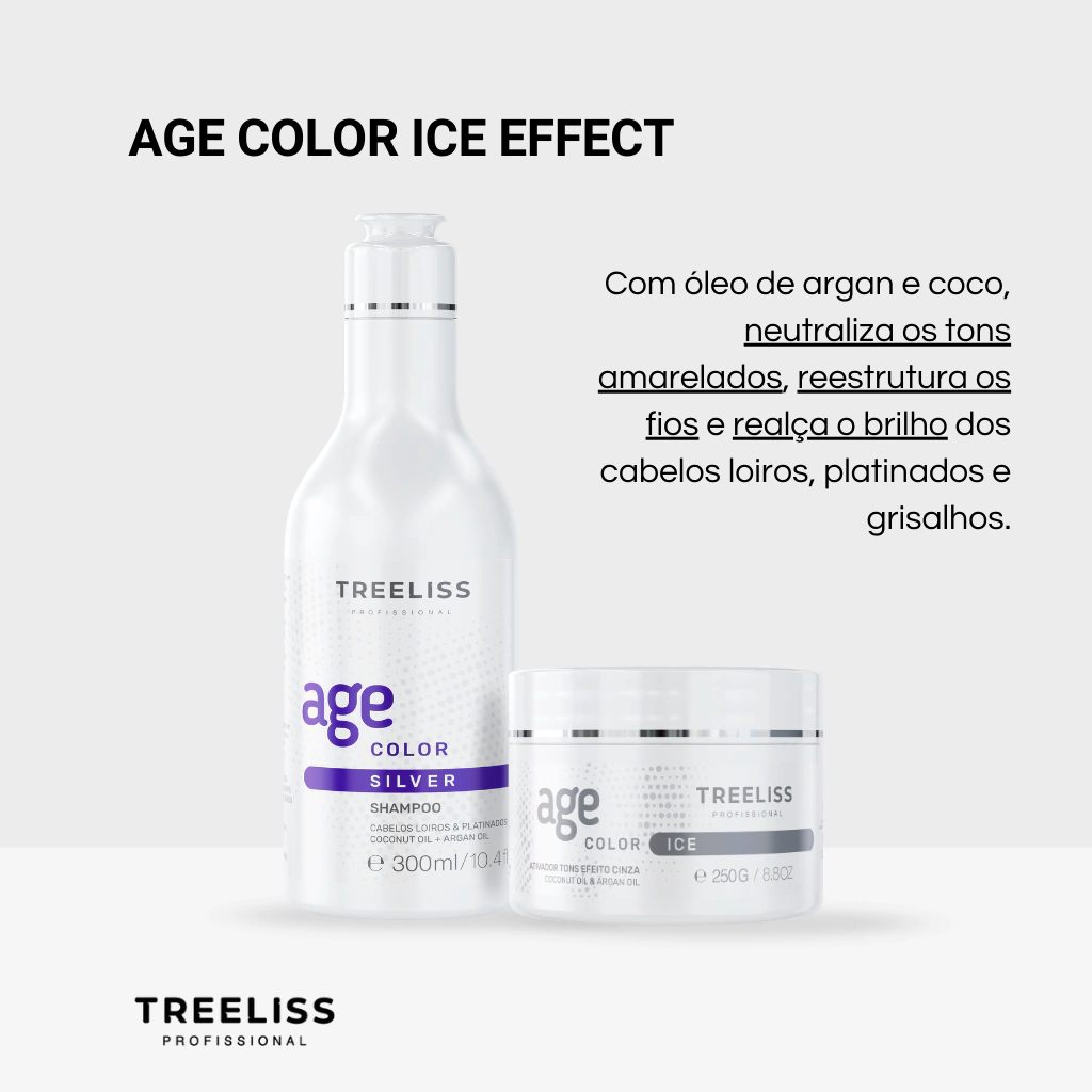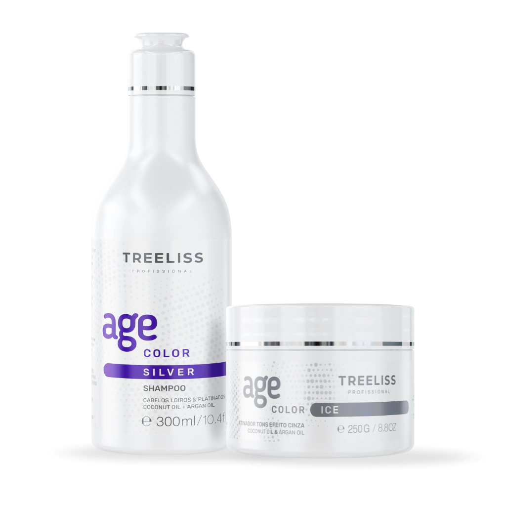 Kit Matizador Age Color com Shampoo Silver e Máscara Ice Treeliss Profissional: Descubra a beleza dos seus cabelos!