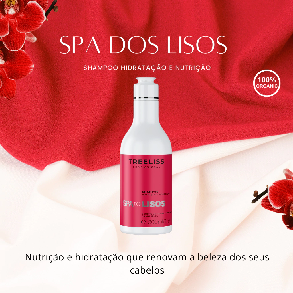 Shampoo Hidratante Spa dos Lisos Treeliss Profissional: Limpa com eficiência e sem causar dano aos cabelos. Com ingredientes hidratantes, ajuda a nutrir a manter a umidade dos fios.