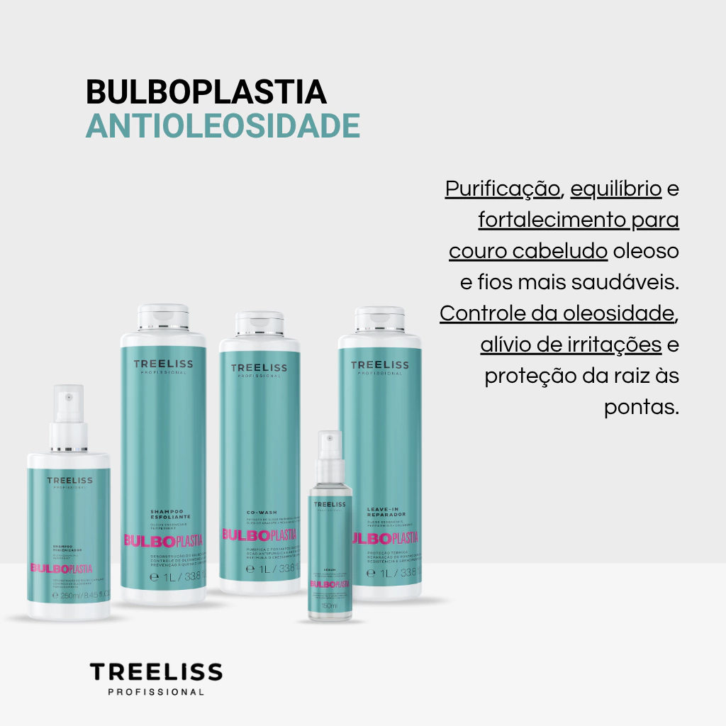 O Kit Tratamento Antioleosidade Profissional Bulboplastia foi desenvolvido para promover uma rotina diária de cuidado e equilíbrio do couro cabeludo. Com uma combinação de ativos como shikakai, chá verde, aloe vera, vitamina D, colágeno e óleos essenciais, o kit desobstrui, controla a oleosidade excessiva, trata irritações e protege os fios da raiz às pontas.