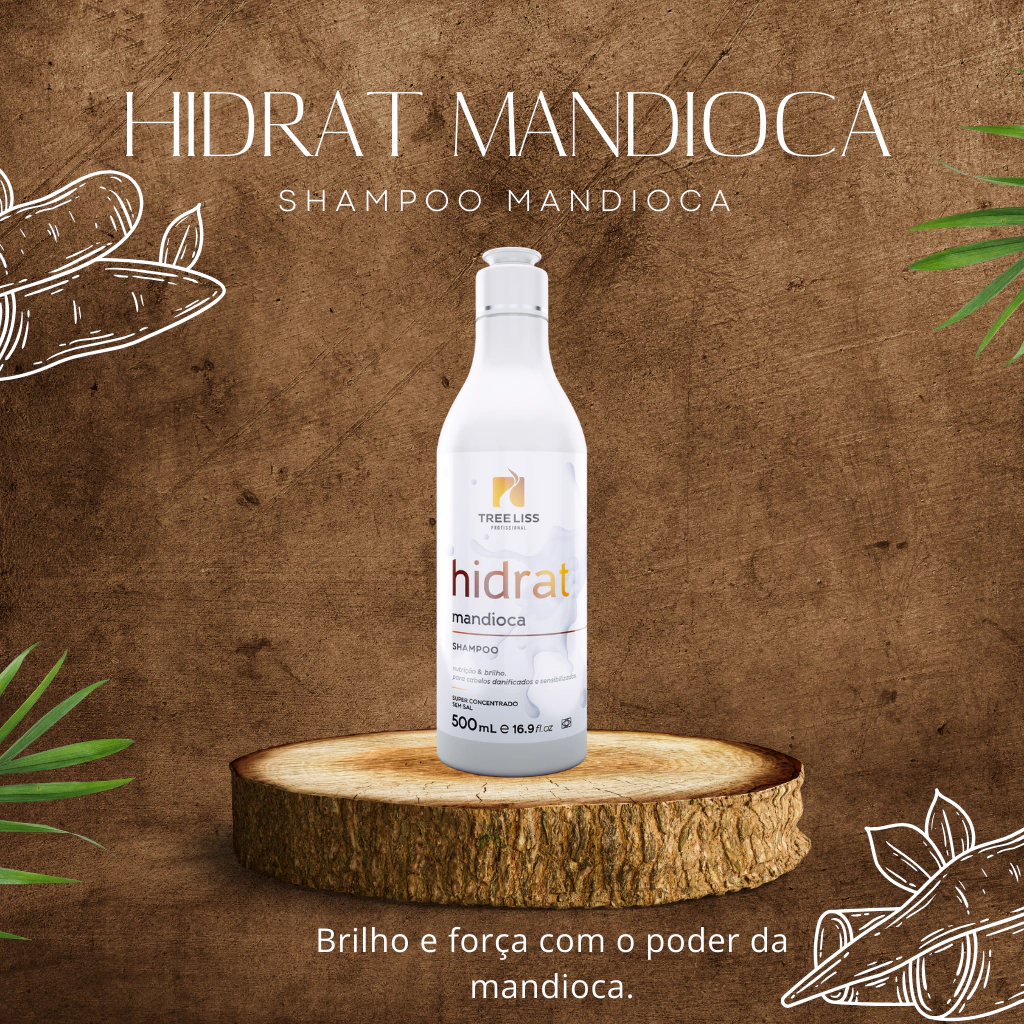 Experimente agora o Shampoo Hidrat Mandioca Treeliss Profissional e apaixone-se pelos seus cabelos.